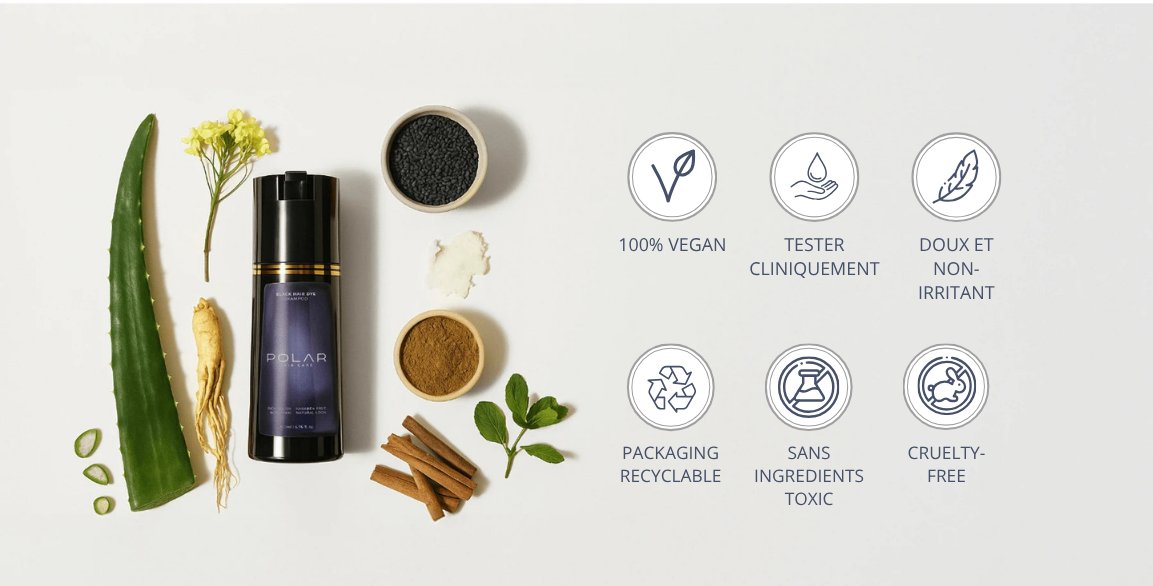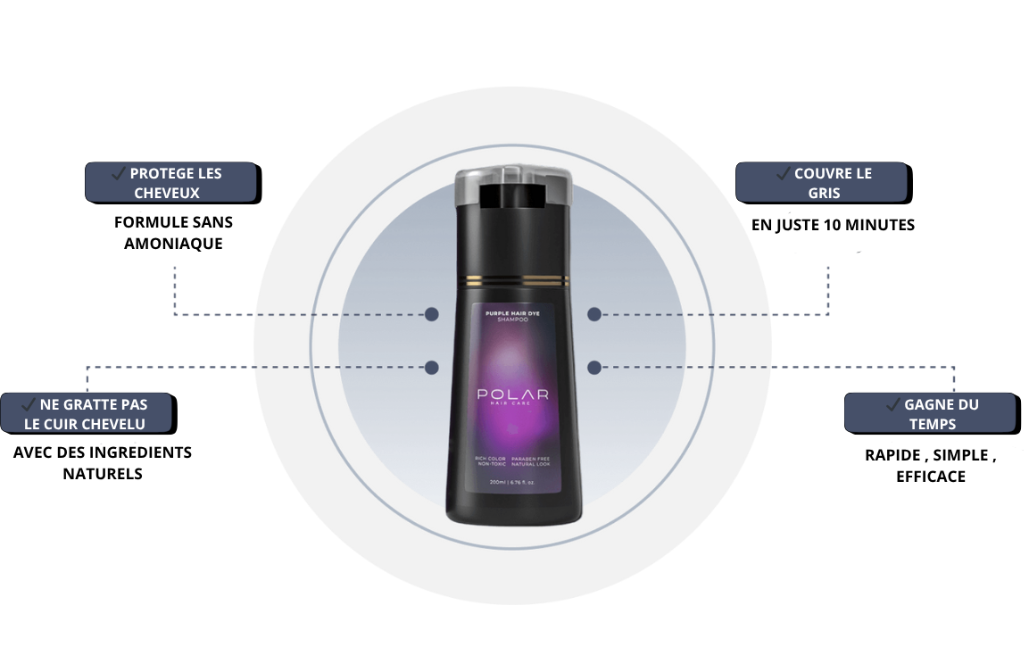 C'est pourquoi nous avons créé PolarHair, un shampooing colorant 3 en 1 qui couvre les cheveux gris en seulement 10 minutes, sans salissures, sans produits chimiques agressifs et sans compromis.